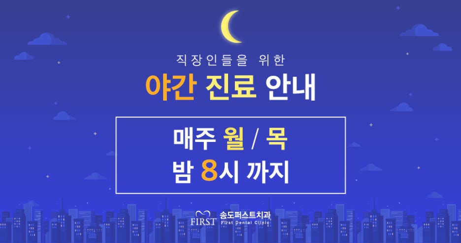 21년 11월 진료안내 페이지 정보 작성자 관리자 댓글 0건 조회 2,651회 작성일 21-10-26 10:04 본문 송도퍼스트치과21년 11월 진료안내 확인하시고원활한 진료 계획 수립하시길 바랍니다.인천 송도퍼스트치과는일요일 휴진을 제외하고21년 11월 정상 진료합니다.해당 일정 참고하여진료계획 부탁드리며, 매주 월·목 밤 8시까지 야간진료 예정이니바쁜 일정으로 진료가 어려우신 분들은야간진료를 잘 활용하시길 바랍니다. 목록 이전글코로나 상생 국민지원금 사용 안내 21.11.17 다음글21년 10월 진료안내 21.09.24 댓글목록 댓글목록 등록된 댓글이 없습니다.