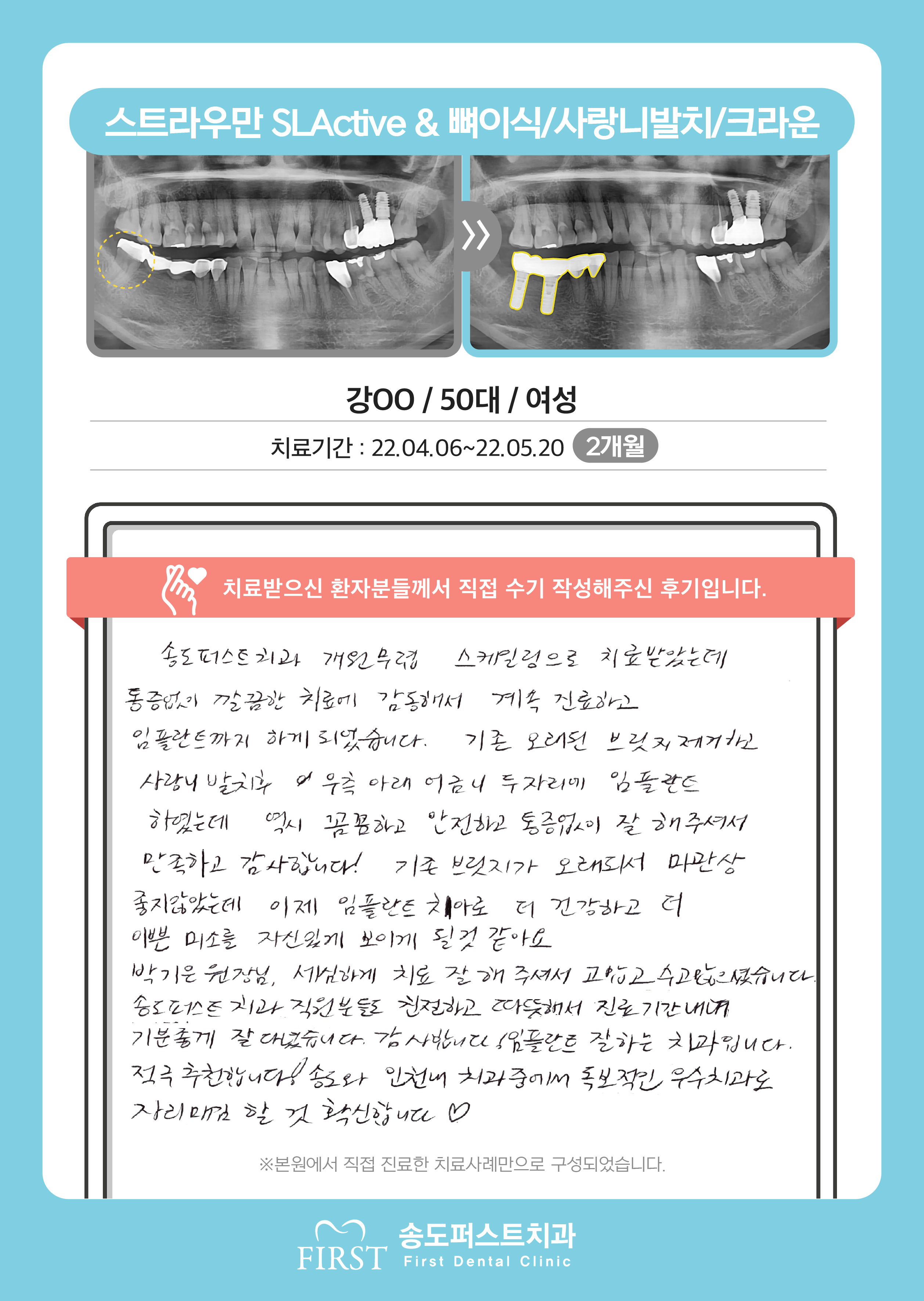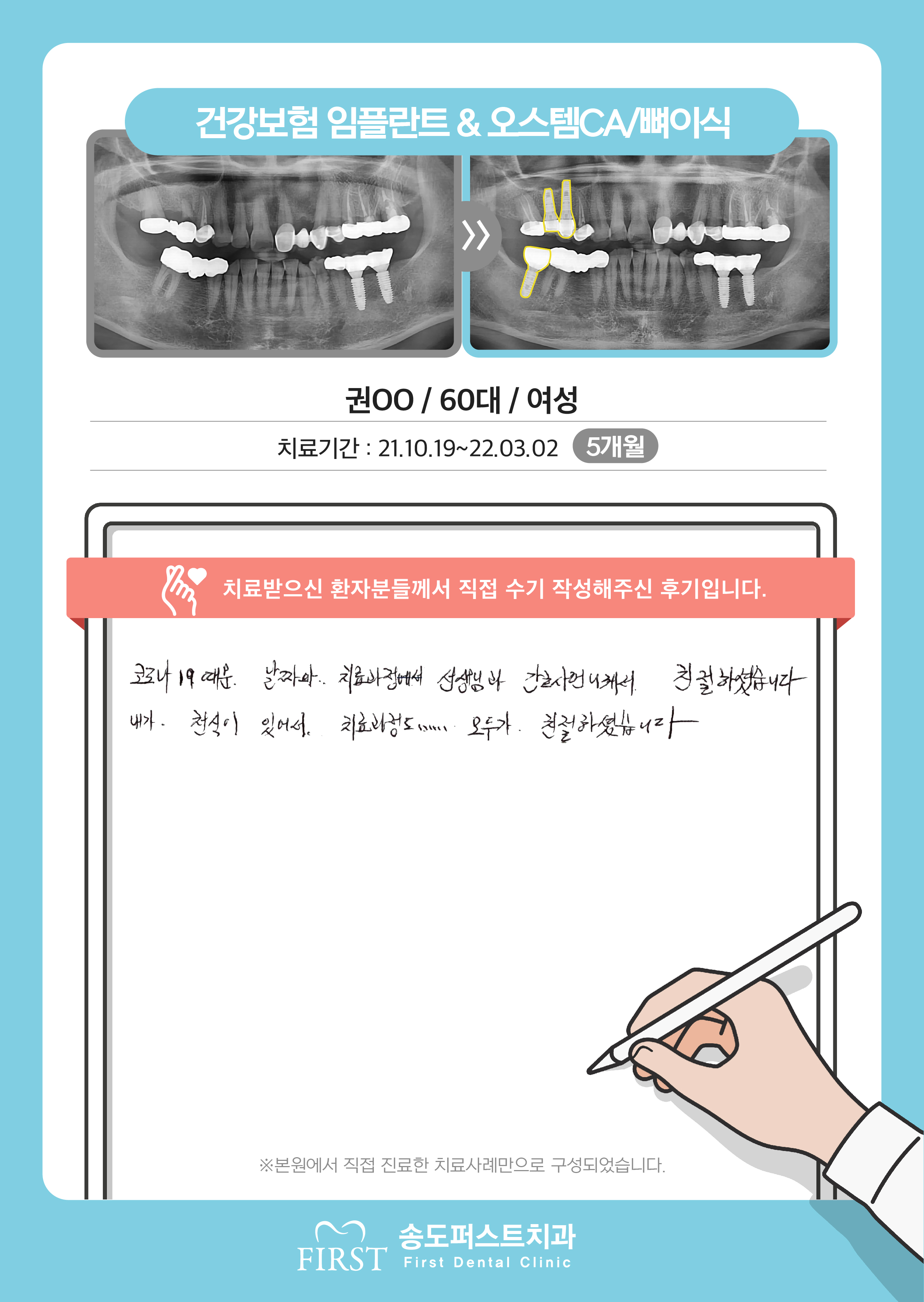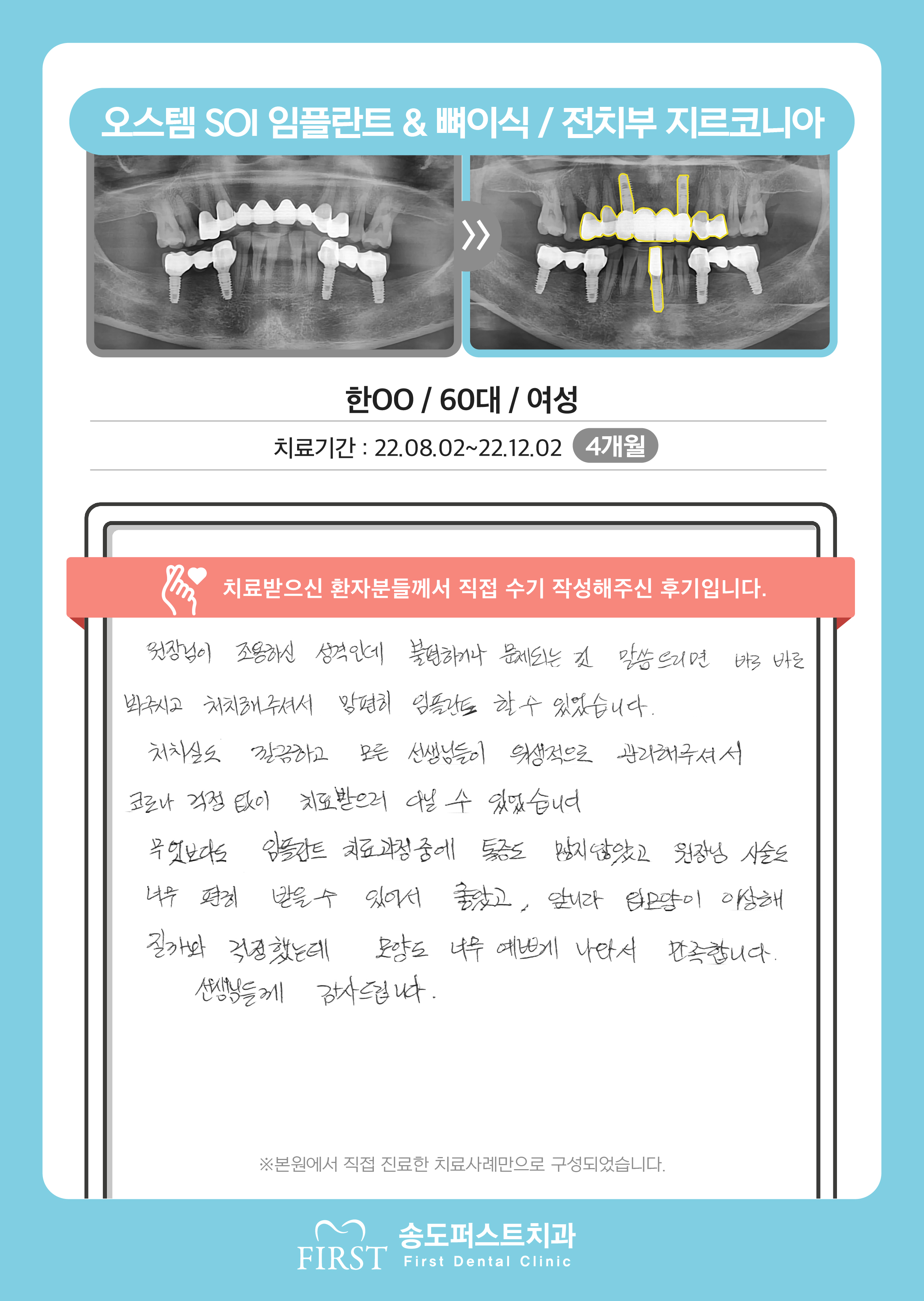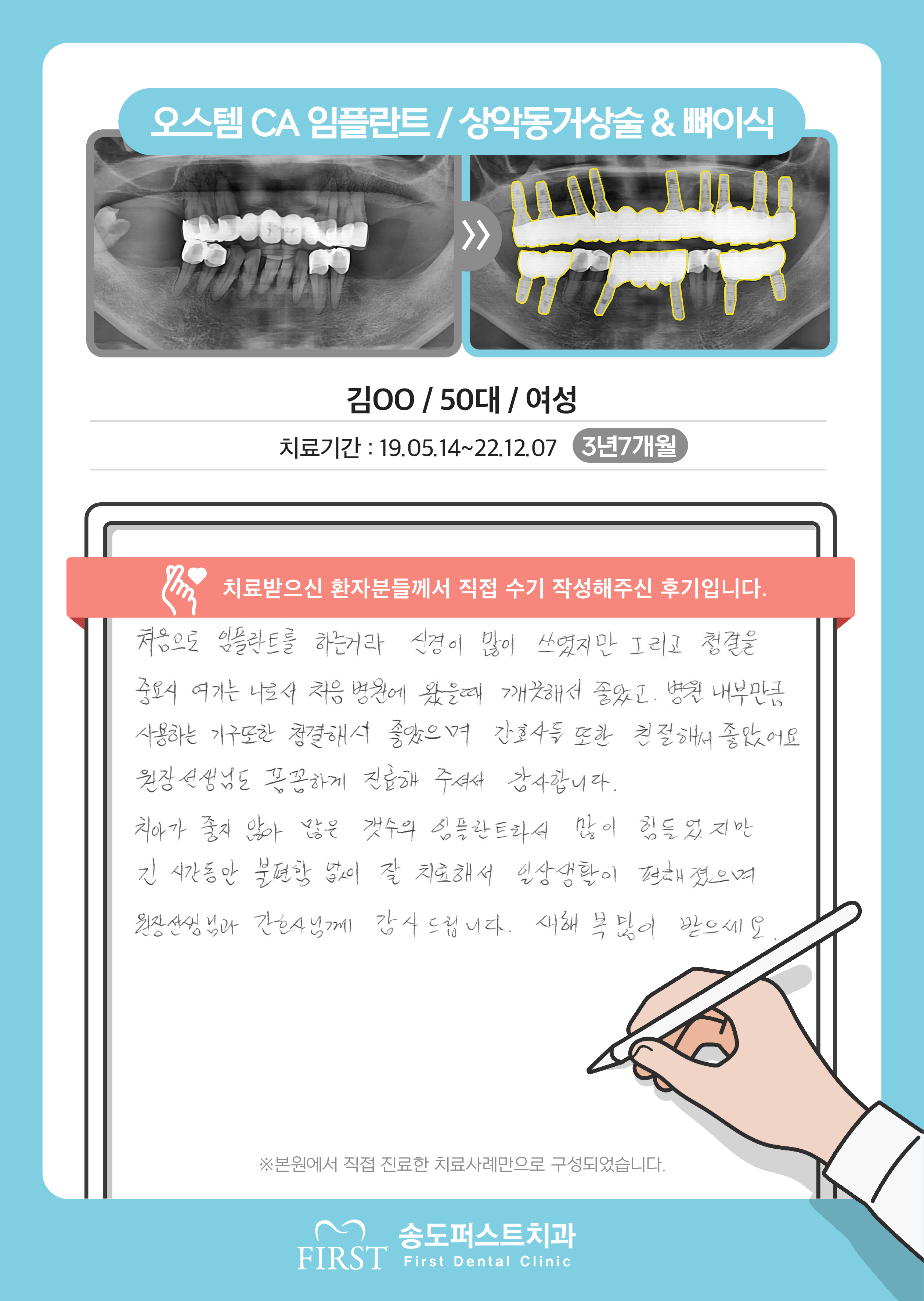 오스템 임플란트/상악동거상술&뼈이식, 긴 시간동안 불편함 없이 잘 치료해서 일상생활이 편해졌습니다.