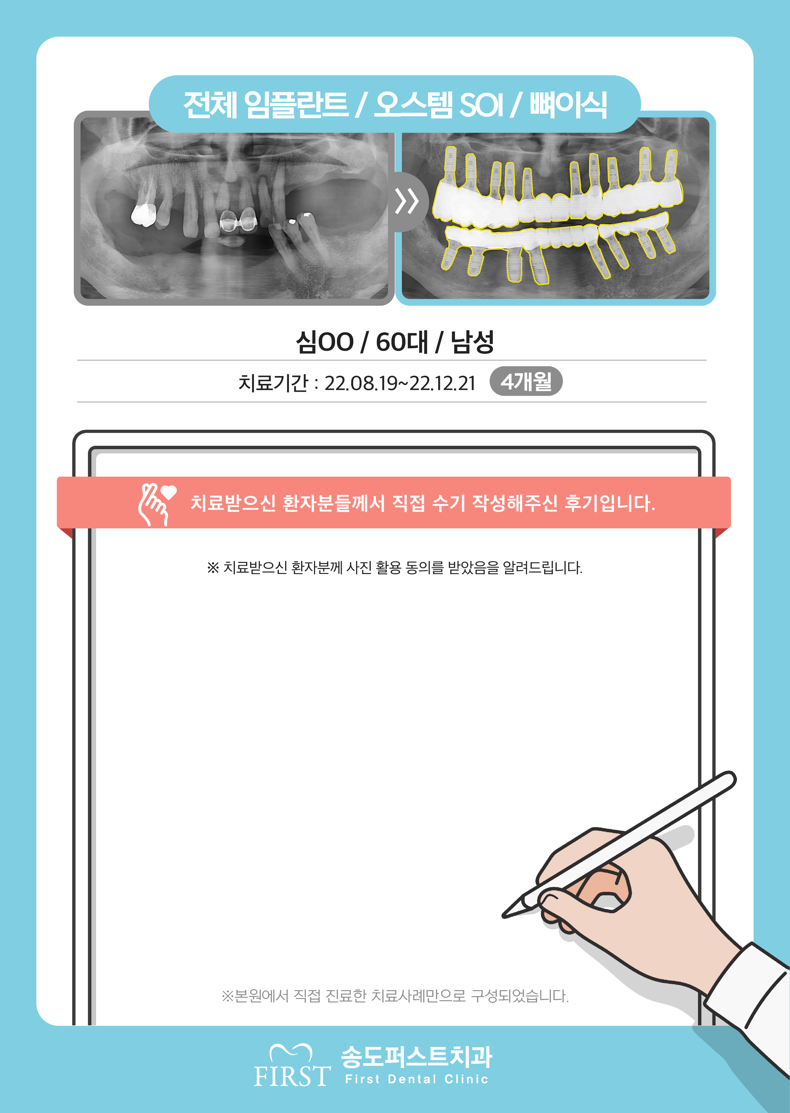오스템 CA & SOI 임플란트 / 뼈이식 / 크라운, 전혀 불편함없이 빠른시간내에 마무리 했어요!