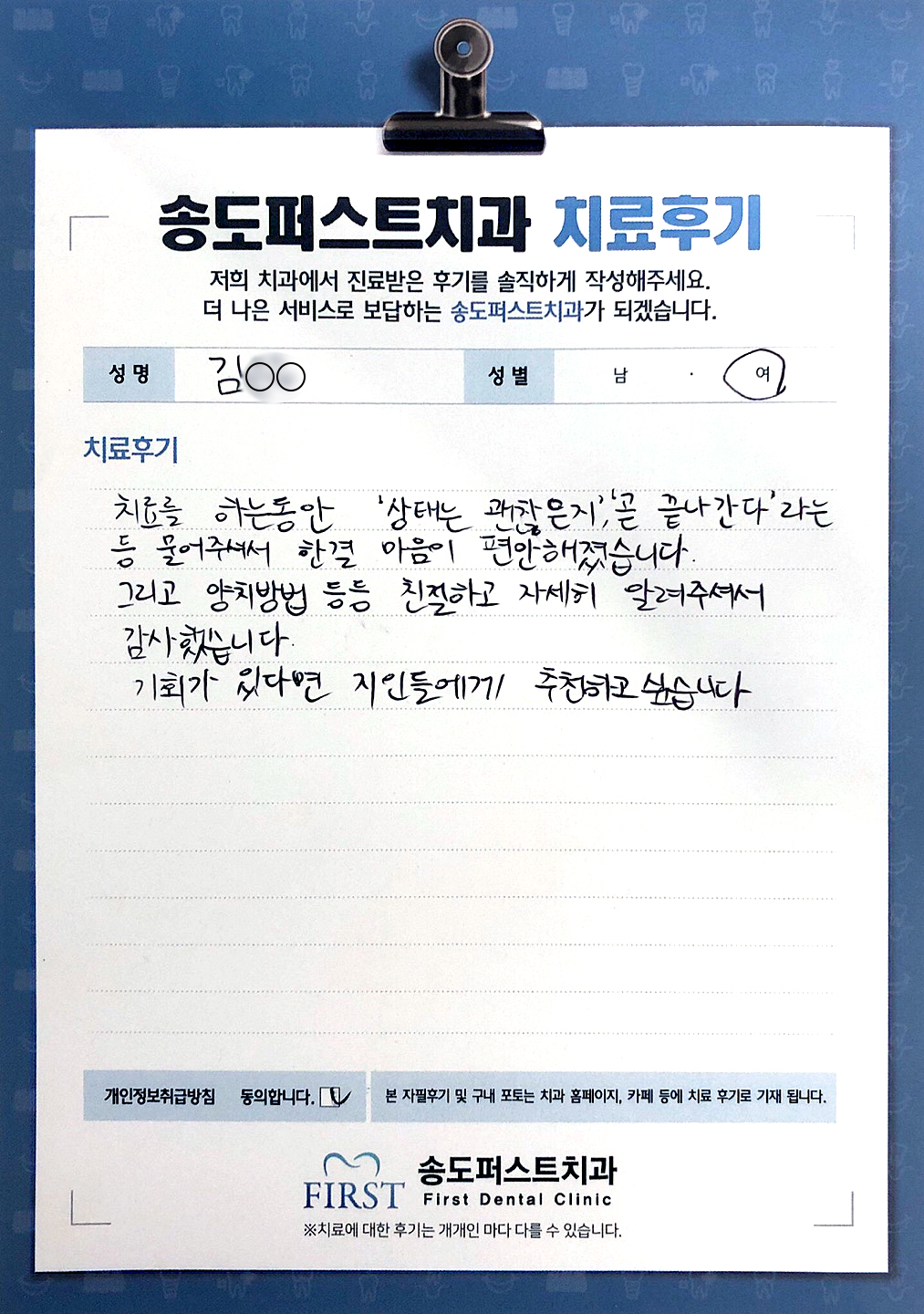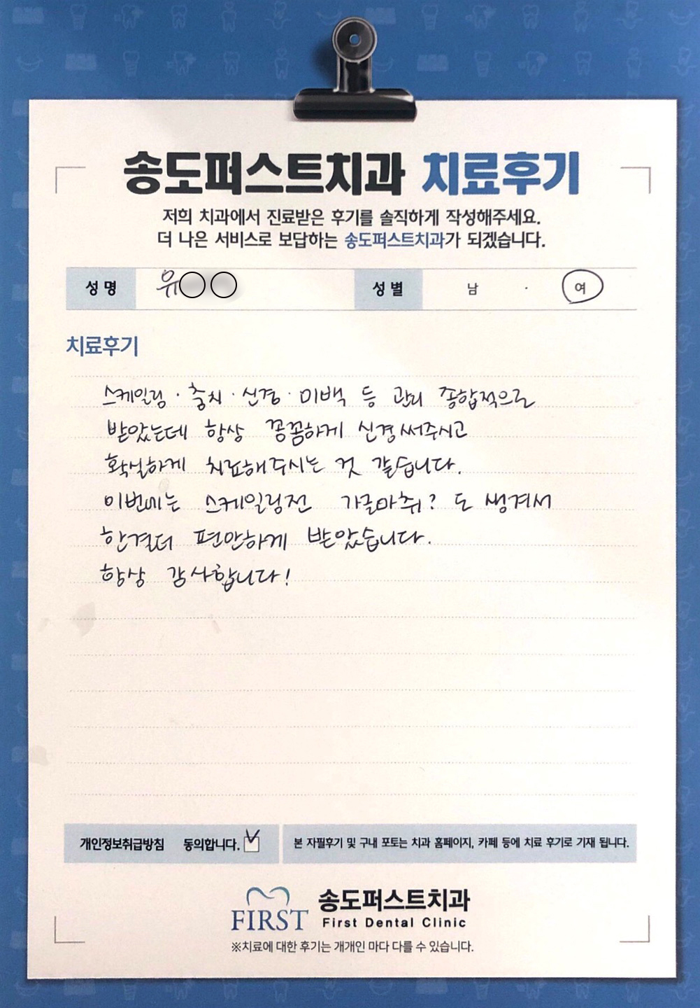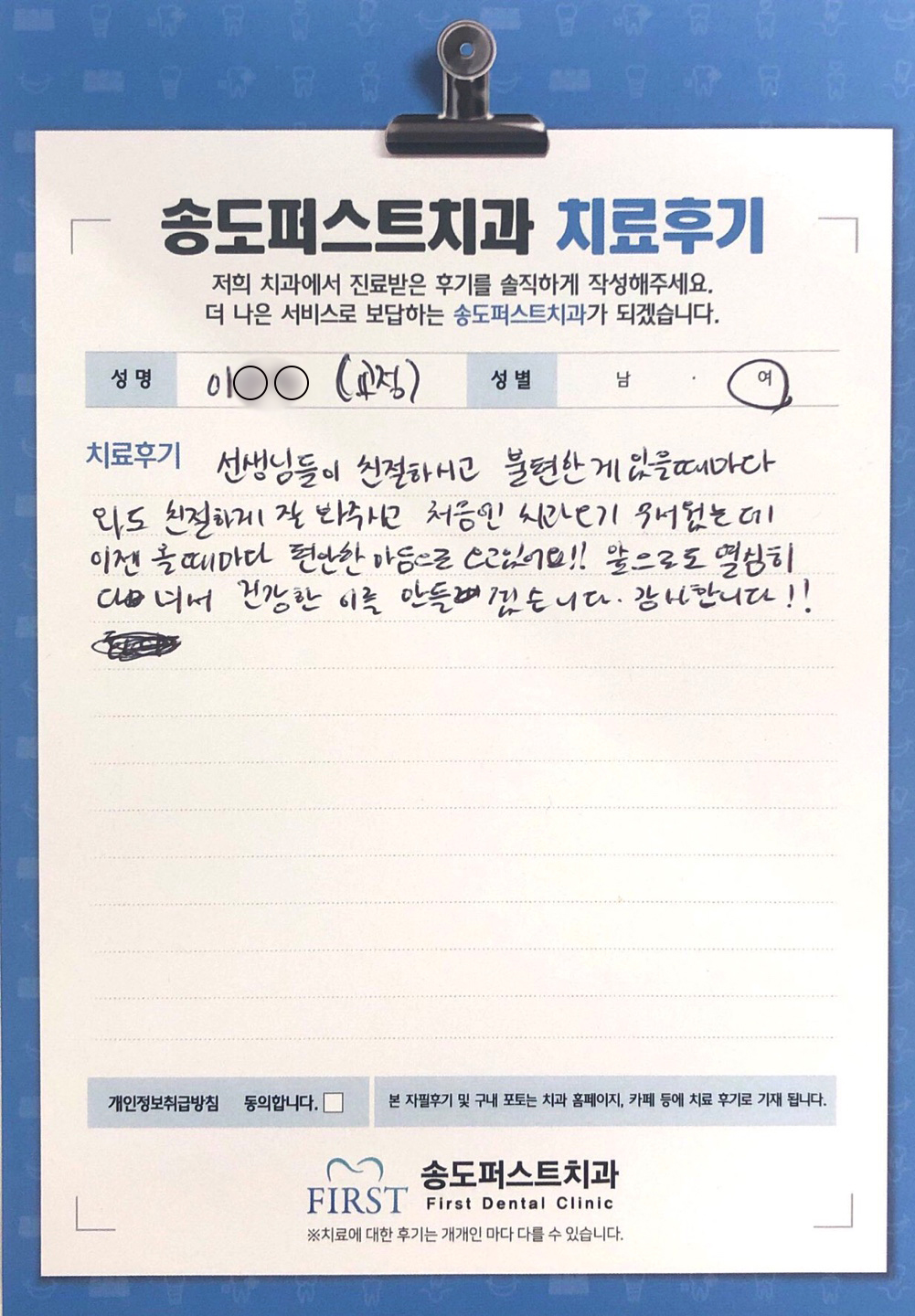 처음엔 치과오기 무서웠는데, 이젠 올때마다 편안한 마음으로 오고 있어요!!