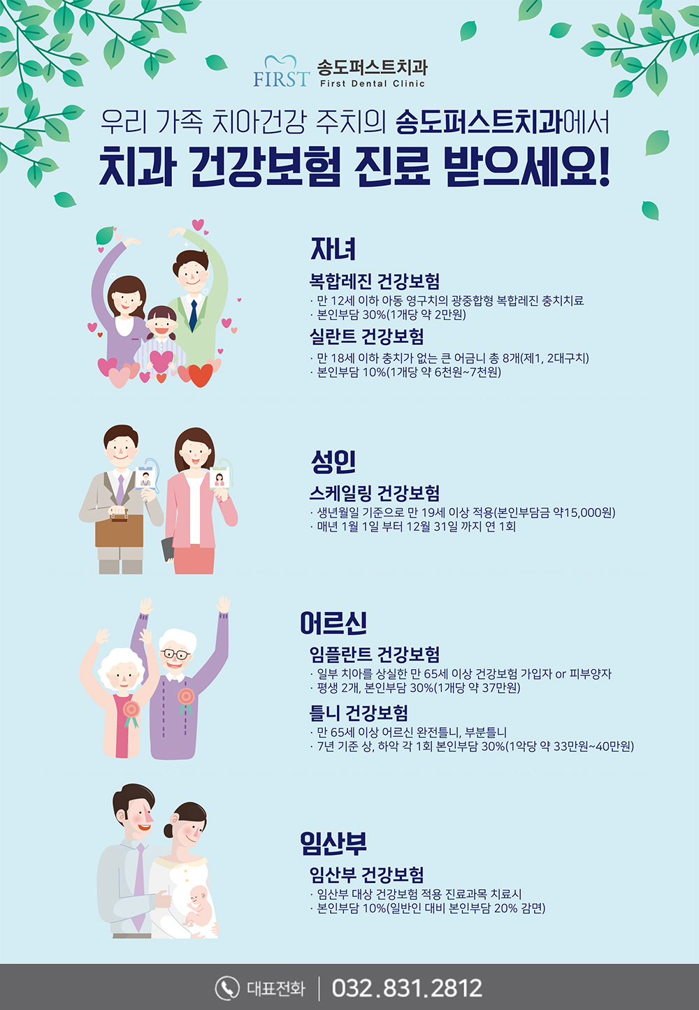우리 가족 치아건강 주치의 송도퍼스트치과에서 치과 건강보험 진료 받으세요!