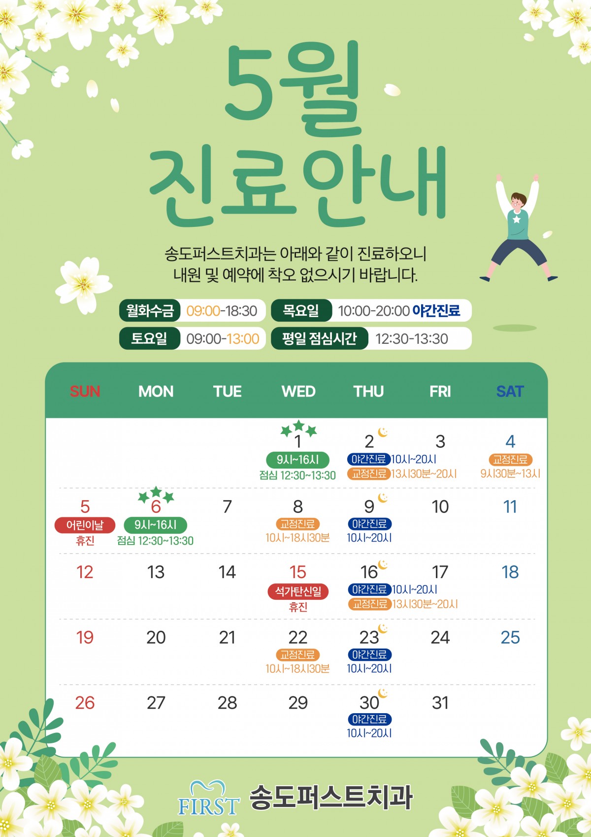 ✔ 5월 6일 (월) 대체 휴일 단축진료(오전 9시 ~ 오후 4시)