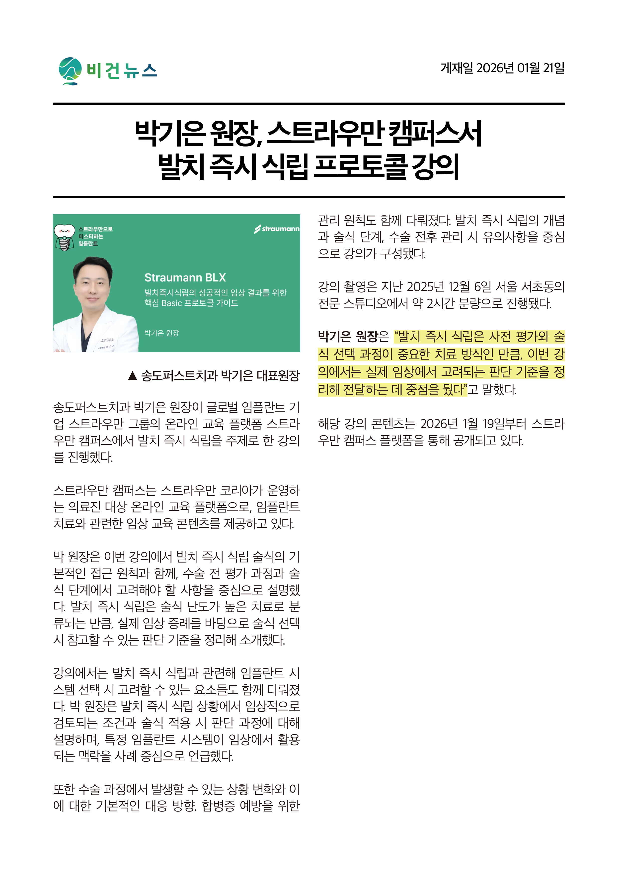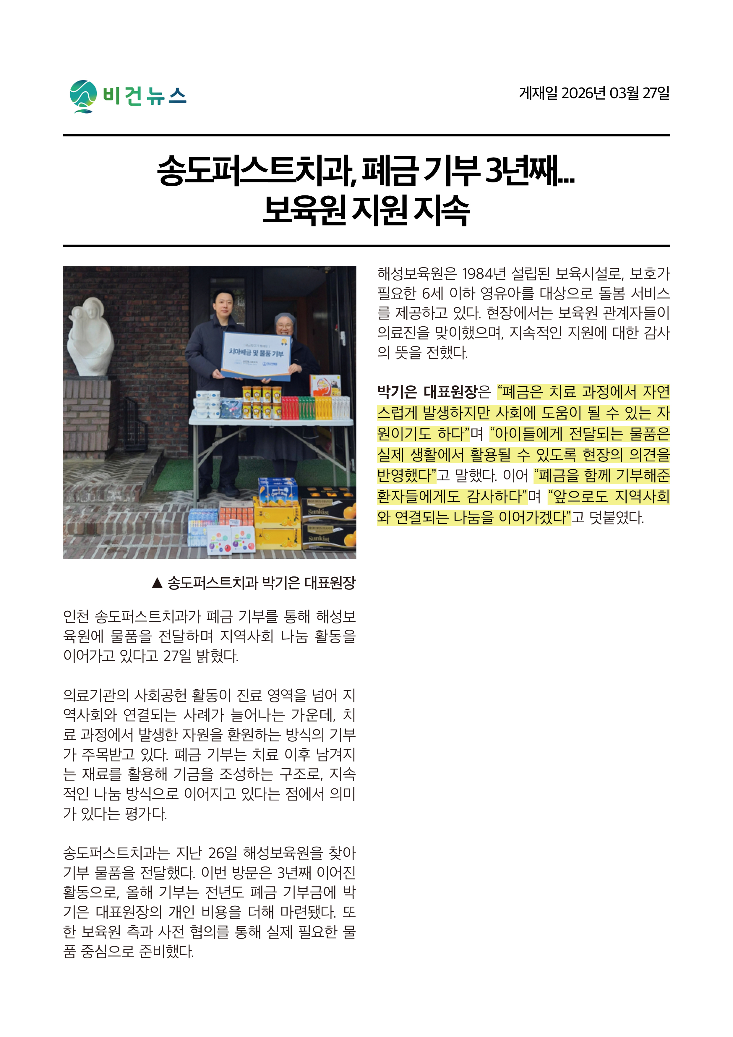 언론이 주목한 송도퍼스트 치과