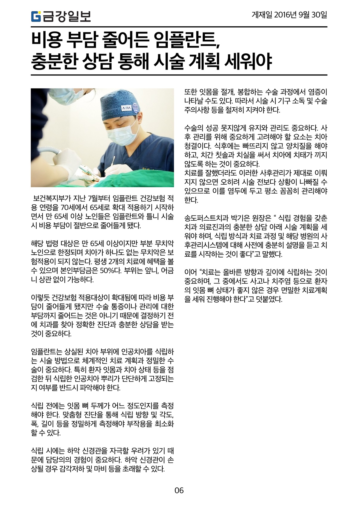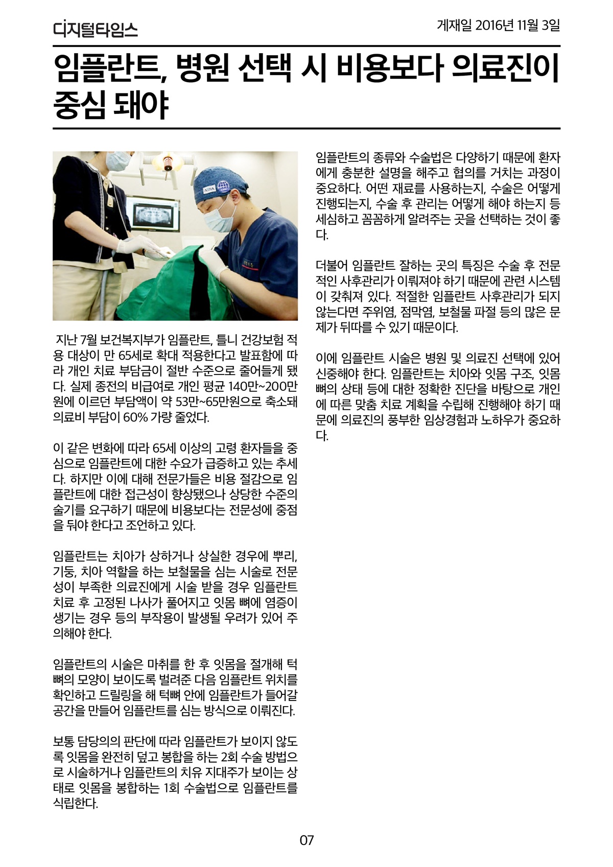 임플란트, 병원 선택 시 비용보다 의료진이 중심 돼야(2016.11.03)