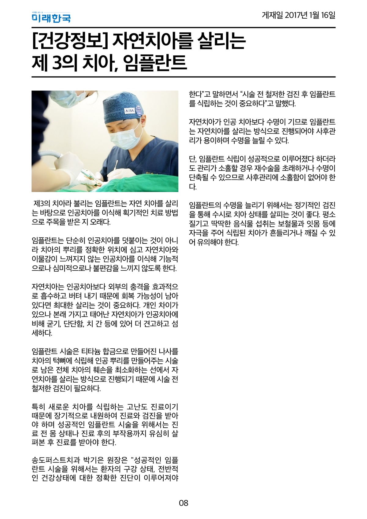 [건강정보] 자연치아를 살리는 제 3의 치아, 임플란트(2017.01.16)