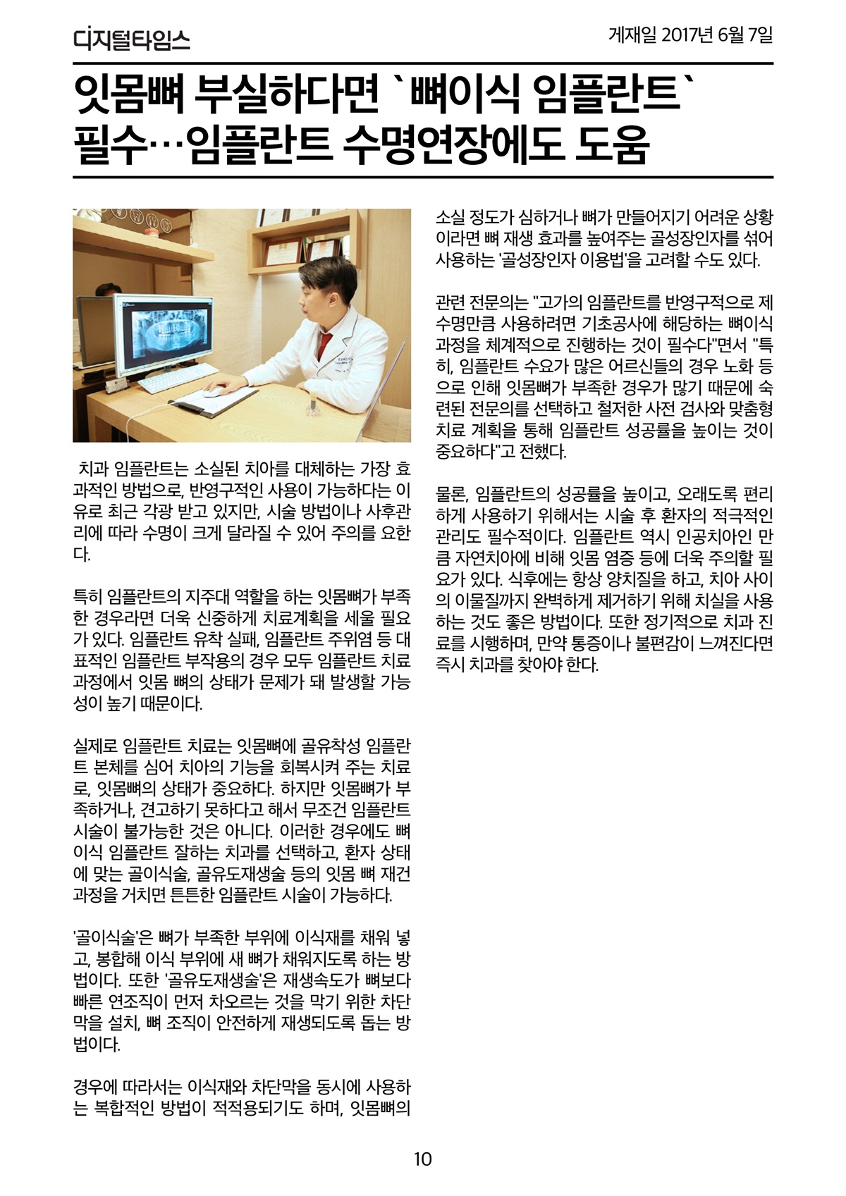 잇몸뼈 부실하다면 `뼈이식 임플란트` 필수…임플란트 수명연장에도 도움(2017.06.07)