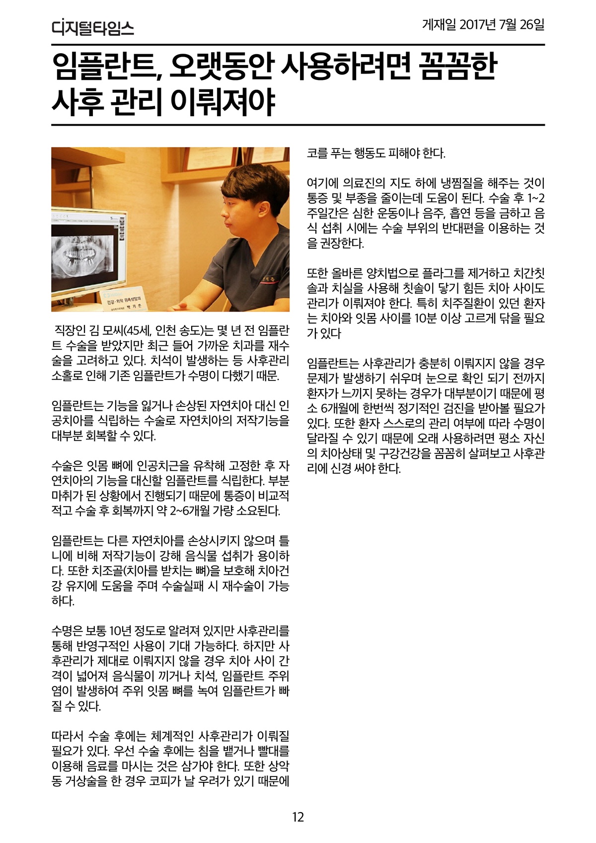 임플란트, 오랫동안 사용하려면 꼼꼼한 사후 관리 이뤄져야(2017.07.26)