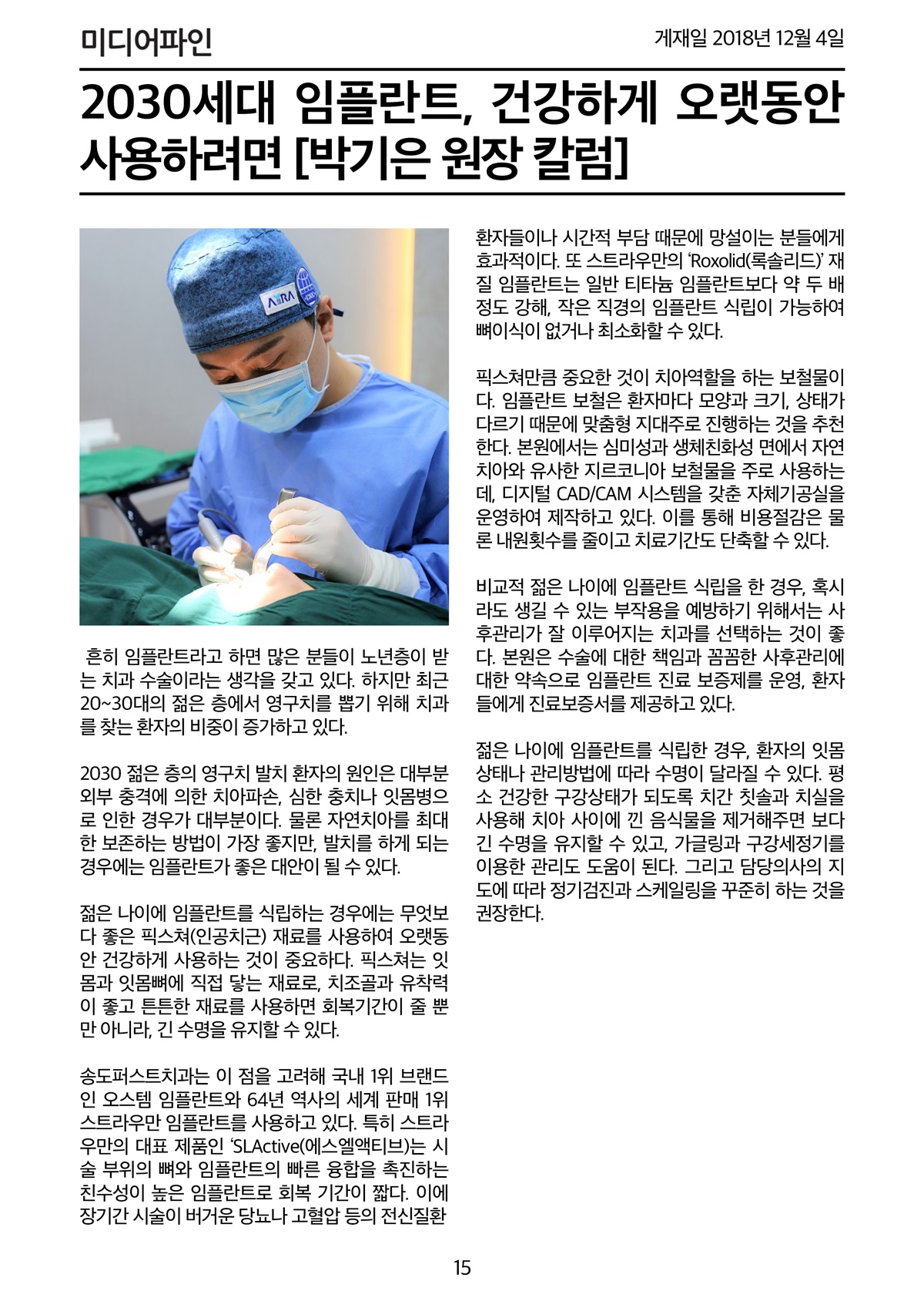 2030세대 임플란트, 건강하게 오랫동안 사용하려면 [박기은 원장 칼럼](2018.12.04)