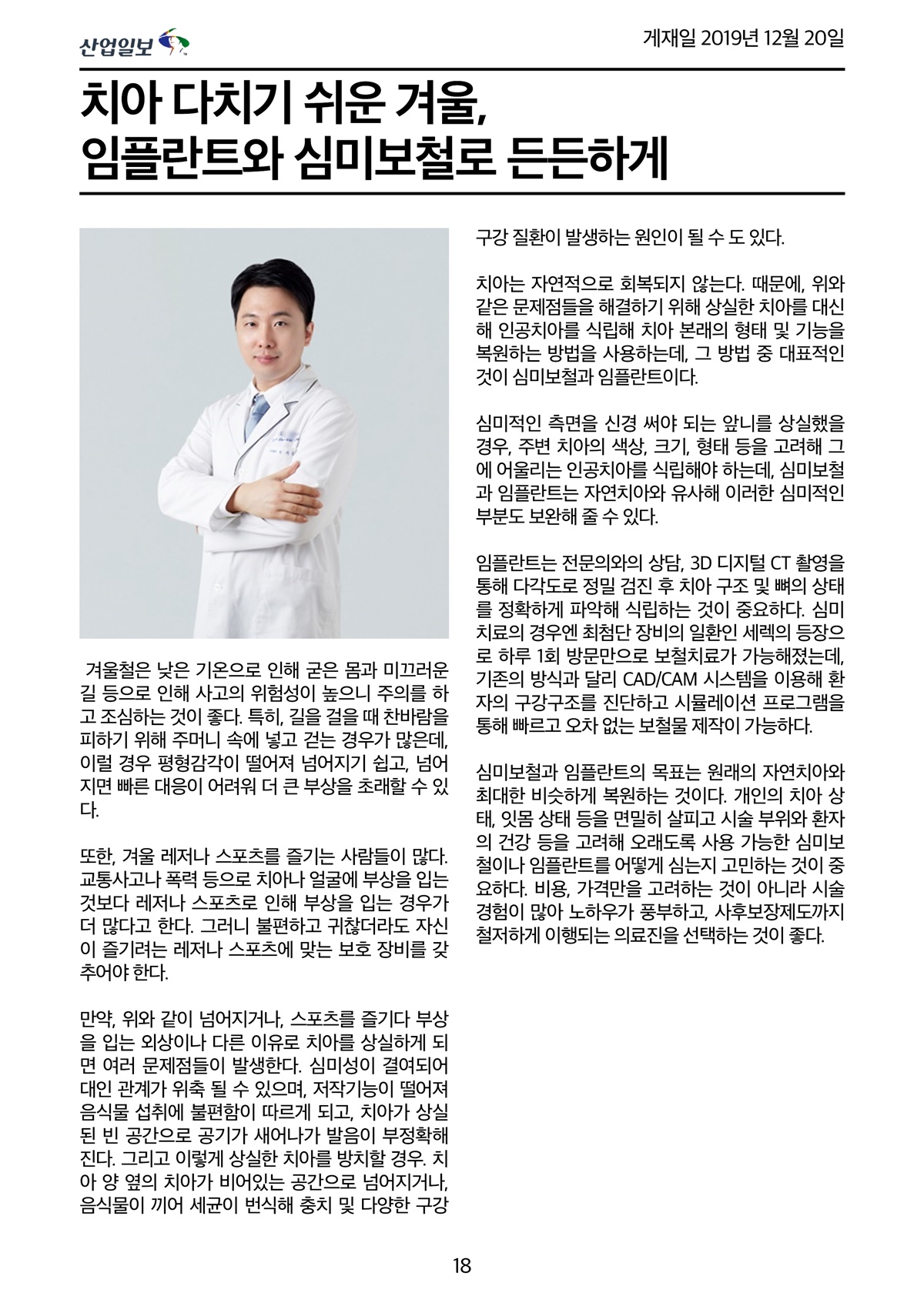 치아 다치기 쉬운 겨울, 임플란트와 심미보철로 든든하게(2019.12.20)