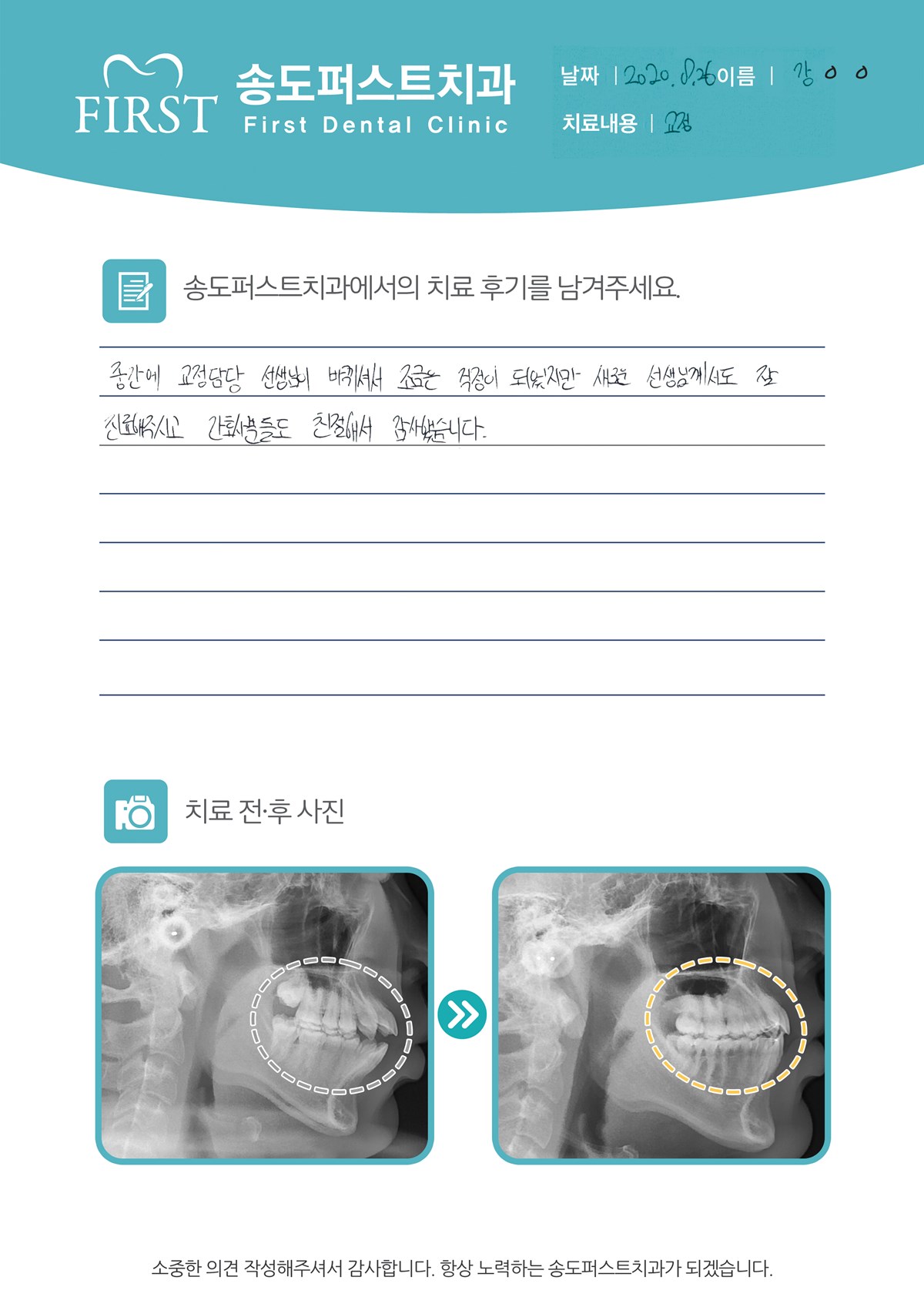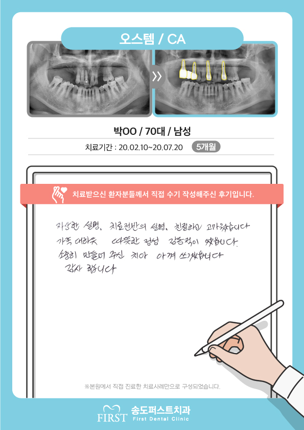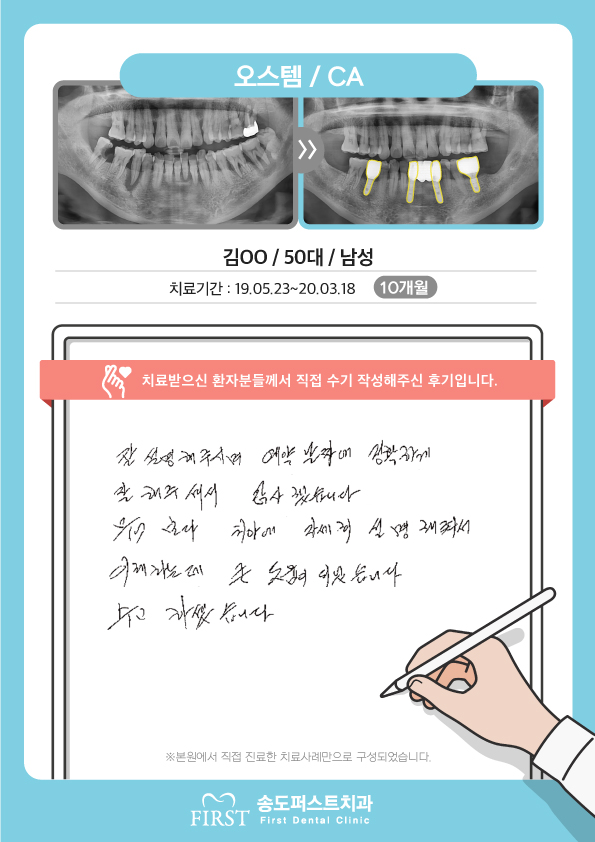 오스템, 원장님의 치료실력에 백프로 만족합니다.