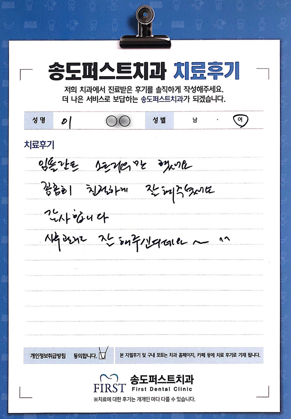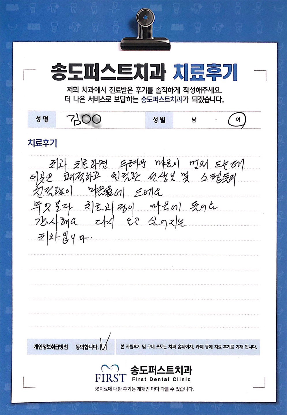 처음엔 치과오기 무서웠는데, 이젠 올때마다 편안한 마음으로 오고 있어요!!